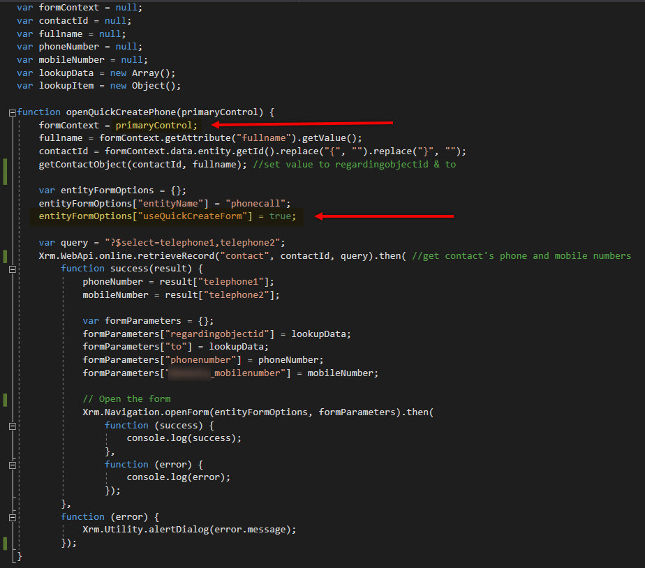 How to Open a Quick Create Phone Call through a Custom Ribbon Button?