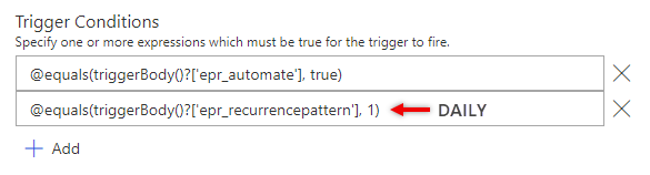 I used the same UI section but I kind of optimized the Power Automate. Instead of 2 cloud flows, I kept it to one and use SWITCH to separate the daily vs weekly reoccurrence.